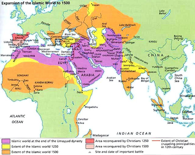 Landkarte 2 zeigt einen Überblick über die islamische Expansion bis 1500.